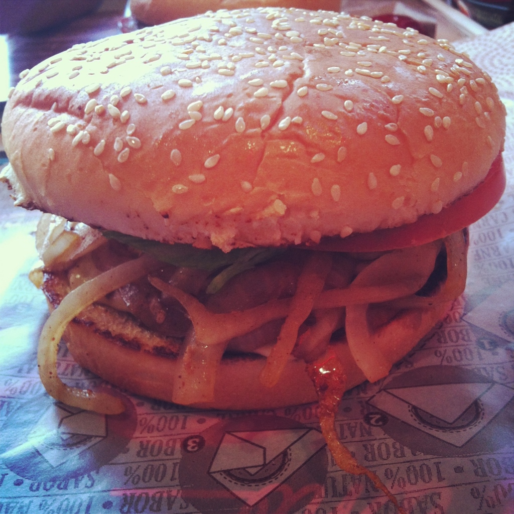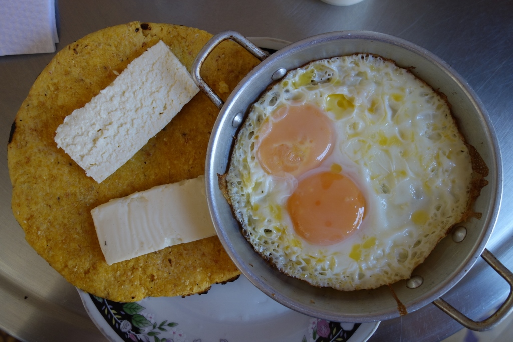 Our first stop was ‘El Enano’, a very poplar, open-air sandwich restaurant that served delicious, greasy sandwiches. They also had a huge selection of fresh fruit juice concoctions served in huge glass pitchers to wash down the greasy sandwiches. We both ordered the “El Enano” sandwich – a meatlover’s delight. Ham, bacon, pork sausage, and melted cheese sandwiched between toasted hotdog buns.